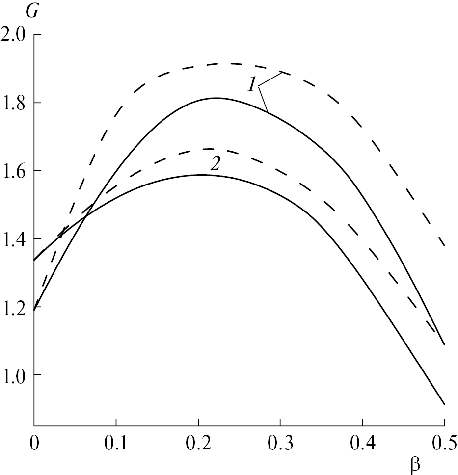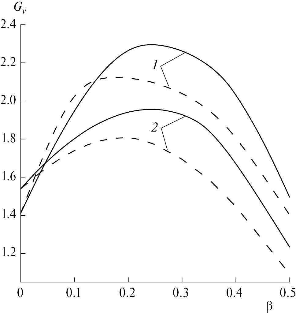 Рис. 3. Зависимость тротилового эквивалента по энергии ударной волны от массовой доли Al (сплошные линии) и AlH3 (штриховые линии) в смеси с БТНЭН (1 ) и октогеном (2).