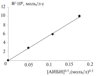Согласно теории [17, 18] скорость жидкофазного окисления (W) линейно зависит от концентрации субстрата окисления и cвязана со скоростью инициирования (Wi) следующим уравнением: