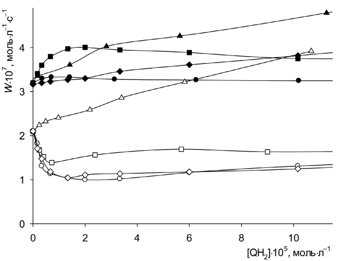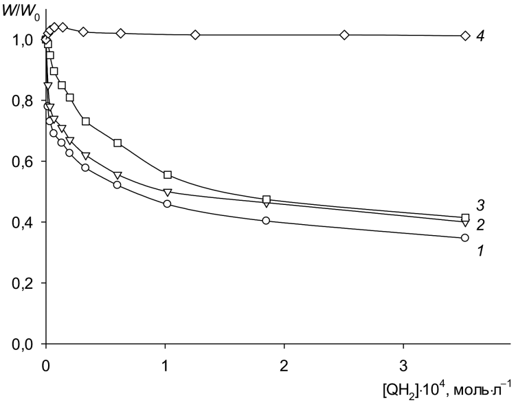 где [QH2] — концентрация фенола, W0 и W — скорость окисления в отсутствие и в присутствии ингибитора соответственно.