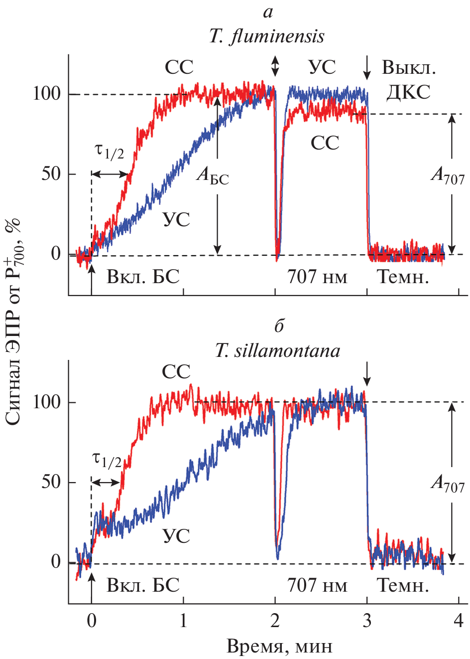 - Kalmatskaya O.A., Trubitsin B.V., Suslichenko I.S., Karavaev V.A., Tikhonov A.N. 2020. Electron transport in Tradescantia leaves acclimated to high and low light: Thermoluminescence, PAM‑fluorometry, and EPR studies. Photosynth. Res. 146, 123–141.