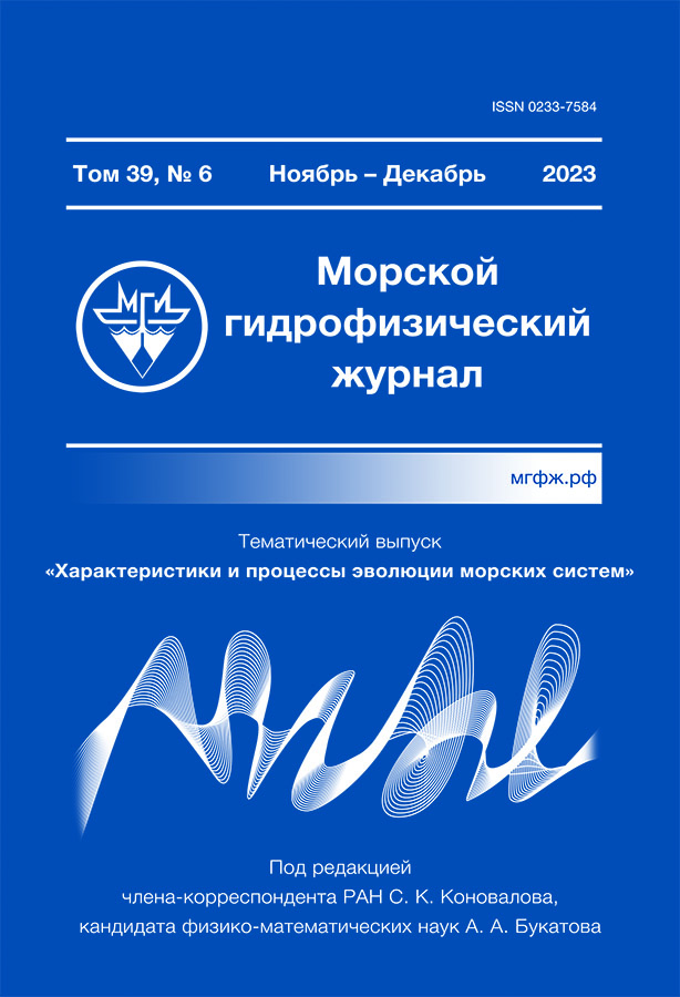 Показано, что периоды роста фактической температуры качественно совпадали с периодами ослабления локального приводного ветра и наоборот – усиление ветра приводило к понижению значений ТПМ. Наиболее высокий уровень обратной корреляции между ТПМ и модулем скорости ветра со значением R до 0,6–0,65 при сдвиге 8–10 ч зафиксирован в 122-м рейсе. Спутниковые данные также показали наличие значимой обратной корреляционной связи между модулем скорости ветра и ТПМ, уровень которой заметно изменялся по пространству. Максимальный уровень связи со значениями коэффициента корреляции −0,55 … −0,7 наблюдался в западной части полигона съемки примерно между м. Айя и м. Сарыч. Восточнее м. Ай-Тодор и примерно до м. Меганом наблюдались резкое понижение уровня обратной корреляции и смена ее знака. Восточнее м. Меганом уровень корреляции начинал повышаться до значимого, и у Феодосийского залива значения коэффициента корреляции достигали −0,45 … −0,5. Показано, что в летний период 2022 г. в зоне уменьшения уровня связи между скоростью ветра и ТПМ наблюдались минимальная изменчивость модуля скорости ветра и максимальная повторяемость ветров минимальной скорости северного и северо-западного направлений.