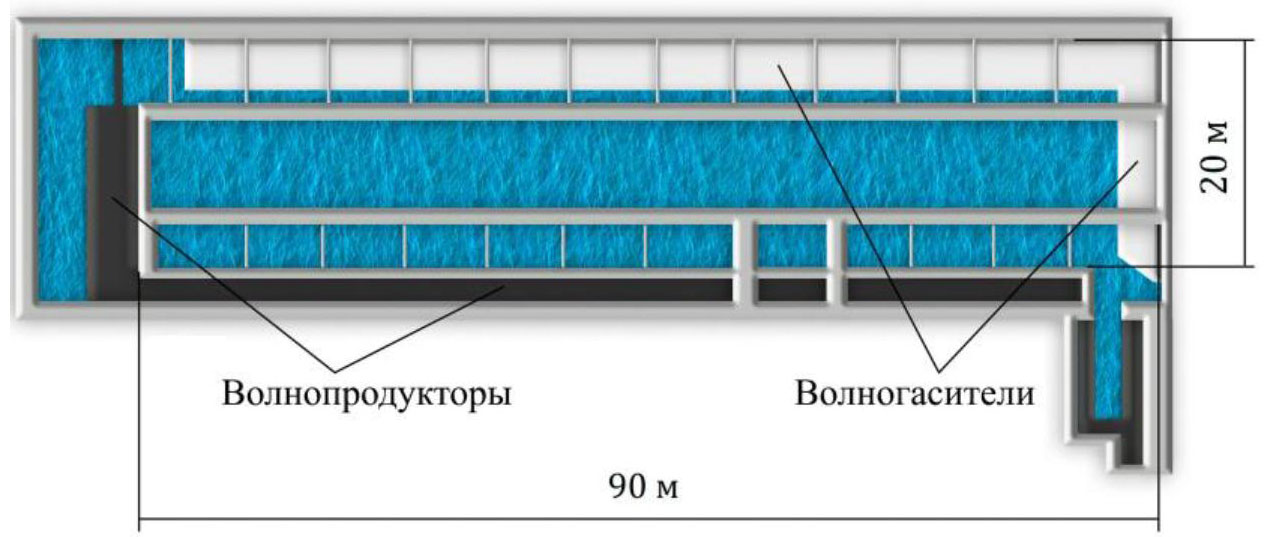 Рис. 9. Схема опытового волнового бассейна ФГУП «Крыловский государственный научный центр»