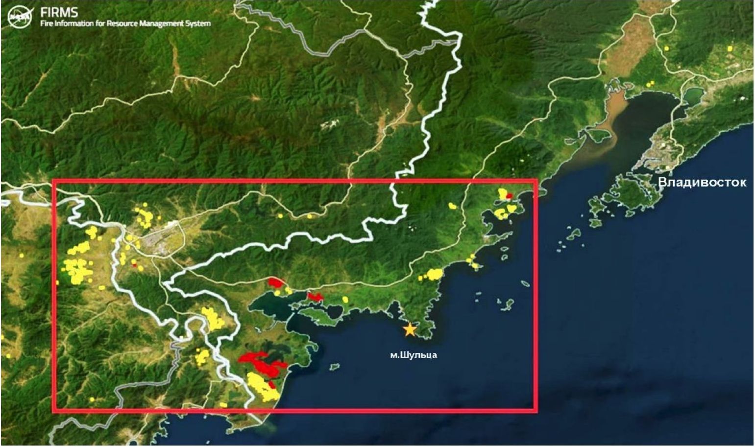 Весенний период характеризуется переходом к теплому сезону года с положительными дневными и часто отрицательными ночными температурами. Кроме того, немаловажным фактом, влияющим на уровень концентраций, является достаточно сухая и малоснежная зима, что в комплексе с постоянным потоком солнечной радиации и прогревом почвенного слоя вызывает частое возникновения пожароопасных периодов с развитием лесных пожаров и травяных палов в Приморском крае. Крайне пожароопасным был март 2024 г., особенно для южной части Хасанского района (рис. 10).