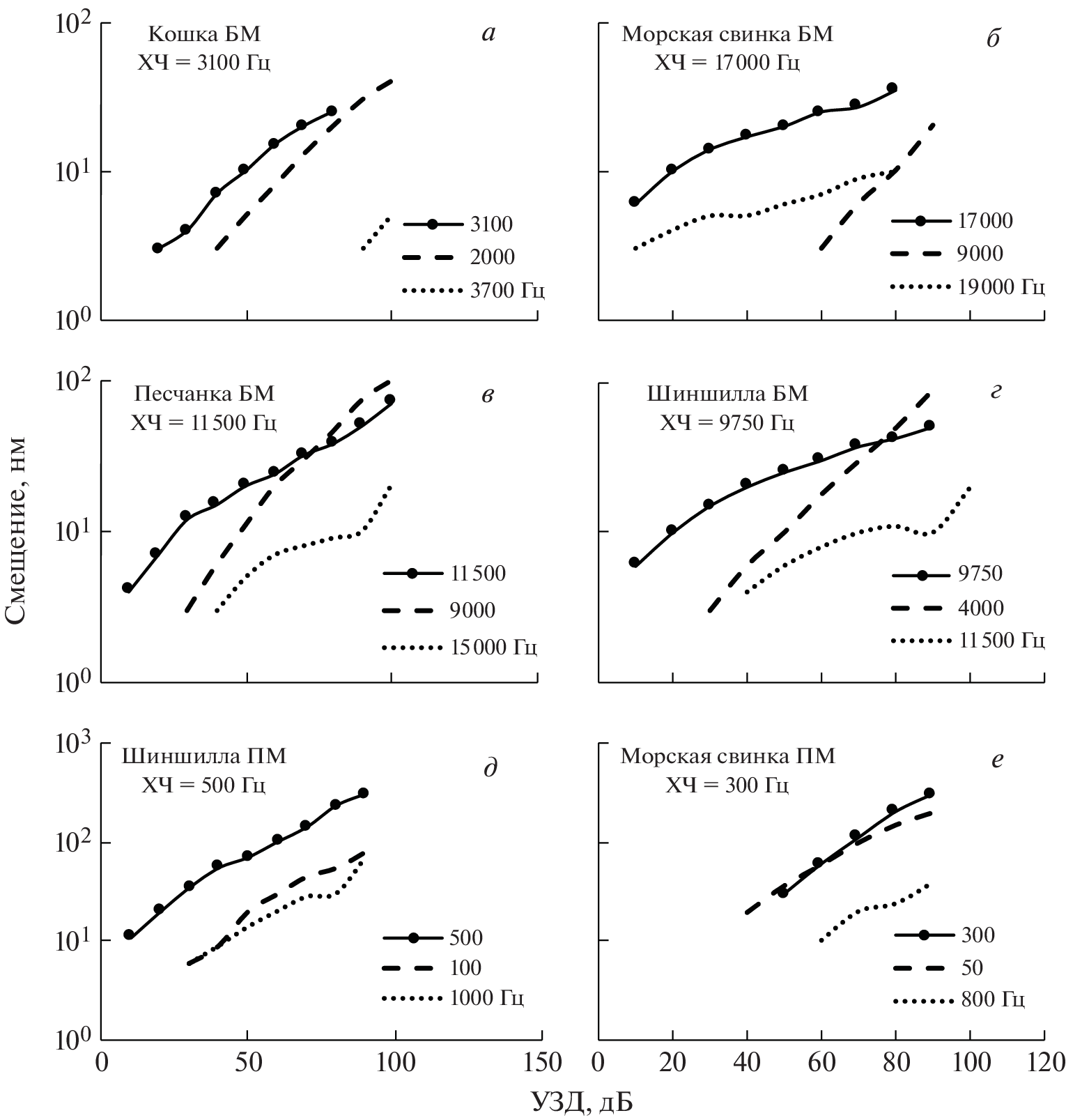 - Cooper N.P., Rhode W.S. Mechanical responses to two-tone distortion products in the apical and basal turns of the mammalian cochlea. J. Neurophysiol. 1997. V. 78. P. 261–270.