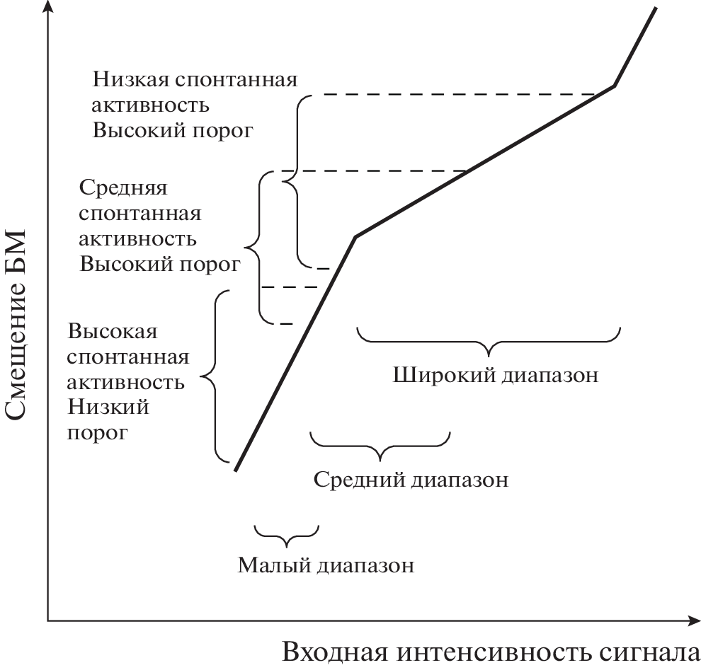 - Yates G.K., Winter I.M., Robertson D. Basilar membrane nonlinearity determines auditory nerve rate-intensity function and cochlear dynamic range. Hearing Research. 1990. V. 45. P. 203–220.