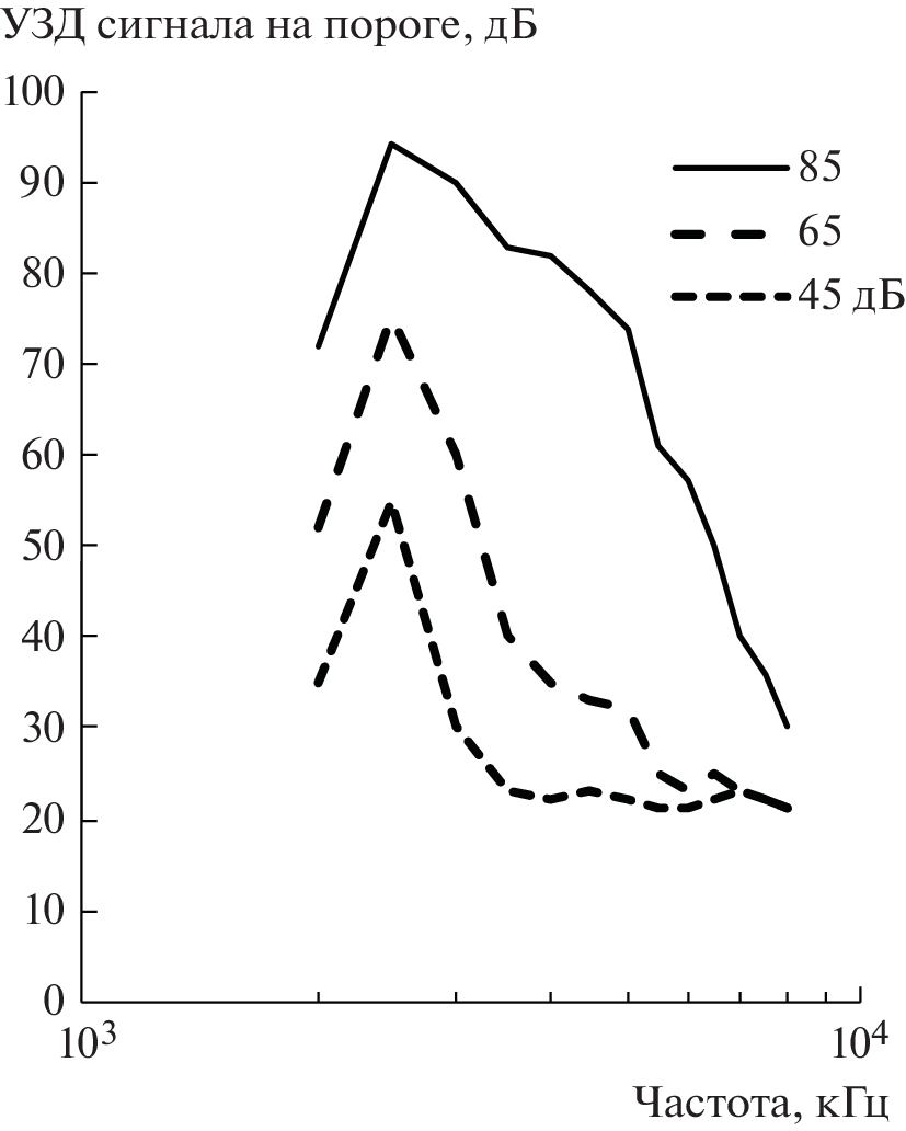 - Popov V.V., Nechaev D.I., Sysueva E.V., Supin A.Ya. The rate of cochlear compression in a dolphin: a forward-masking evoked-potential study. J. Comparative Physiology A. 2020. V. 206. P. 757–766.