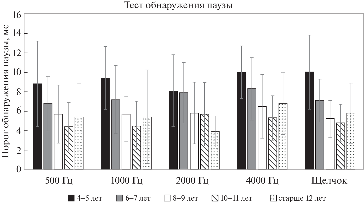 - Buss E., Porter H.L., Hall J.W., Grose J.H. Gap detection in school-age children and adults: center frequency and ramp duration. Journal of Speech, Language, and Hearing Research. 2017. V. 60 (1). P. 172–181. https://doi.org/10.1044/2016_JSLHR-H-16-0010