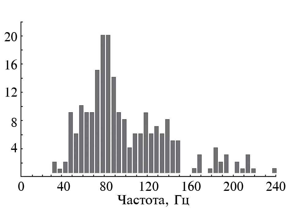 В ходе тестирования комаров в электрофизио логических экспериментах также были обнаружены клетки более высокими порогами по сравнению с наиболее чувствительными нейронами (Lapshin, Vorontsov, 2019, 2021). Следует отметить, что при внеклеточной регистрации рецепторных ответов от антеннального нерва в большинстве случаев основной вклад в суммарный потенциал вносят наиболее чувствительные широкополосные рецепторы. Их активность маскирует реакции менее чувствительных клеток, поэтому последние бывает трудно обнаружить обычными электрофизиологическими методами. Это обстоятельство в итоге искажает статистику распределения характеристик исследованных рецепторов ДО.