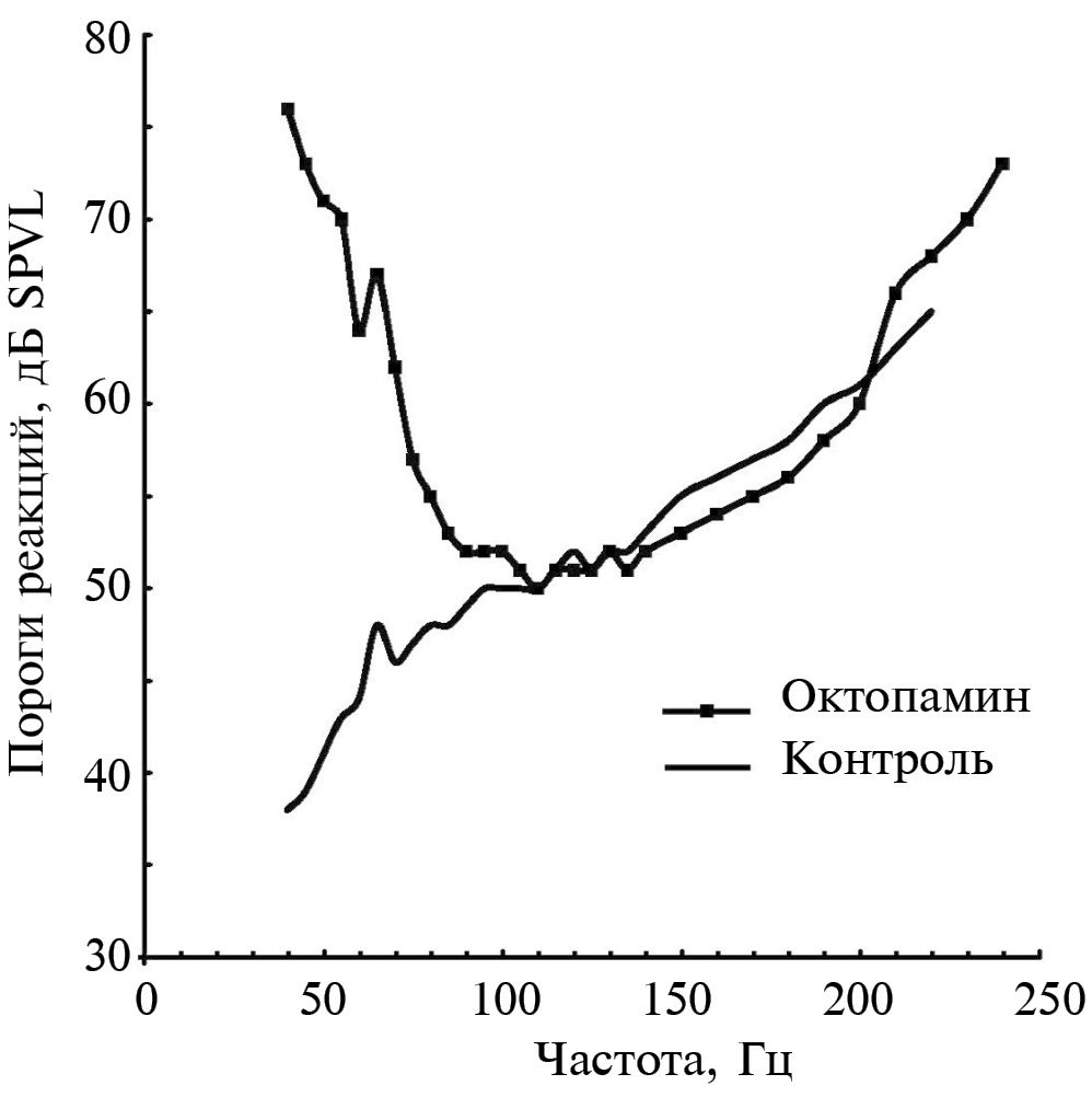 Основной объем данных о частотной избирательности ДО ранее был получен на основе анализа “микрофонного” потенциала, который можно зарегистрировать с помощью металлического электрода, введенного в полость ДО (Tischner, 1953; Тамарина и др., 1980; Cator et al., 2009). На основании таких измерений был сделан вывод, что частотную характеристику слуховой системы определяют резонансные свойства антенн и собственная настройка слуховых рецепторов джонстонова органа (Göpfert et al., 1999).