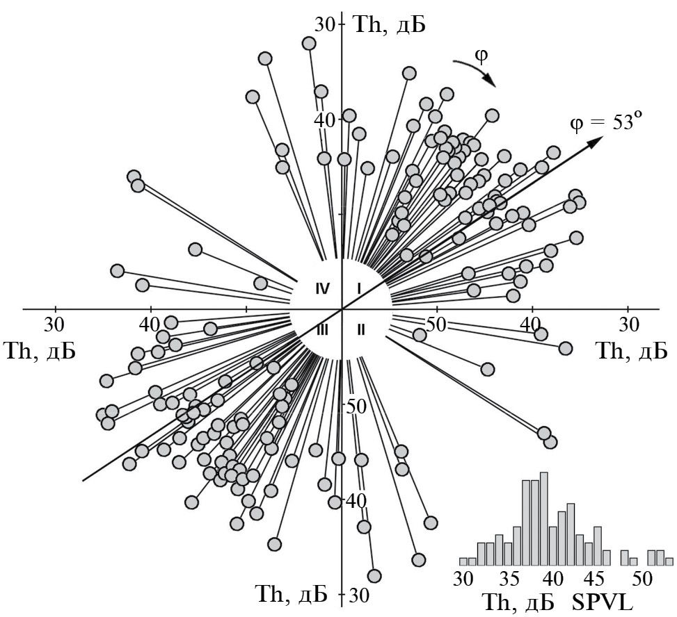 В процессе стимуляции синусоидальным сигналом диаграмма направленности получается всегда симметричной относительно центра диаграммы и по форме напоминает цифру 8. Ширина диаграмм направленности большинства рецепторов ДО составляла порядка 120° по уровню –6 дБ от максимума.