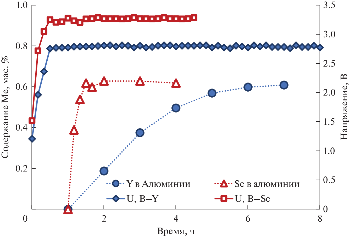 - Yu G., Zhou L., Liu F., Pang S., Chen D., Zhao H., Zuo Zh. Electrochemical co-reduction of Y(III) and Al(III) in a fluoride molten salt system and electrolytic preparation of Y–Al intermediate alloys // J. Rare Earths. 2022. 40. № 8. P. 1945–1952.