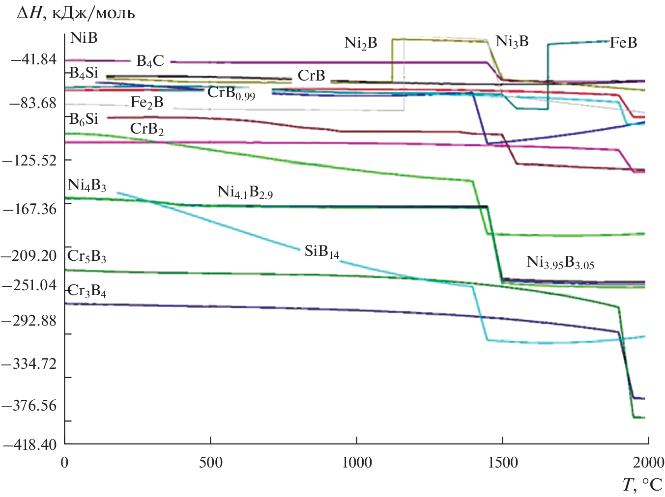 THERMOCHEMICAL STUDY OF THE FORMATION OF SILICIDES, BORIDES, CARBIDES IN Fe–Ni–Cr–Cu–Si–B–C ALLOY