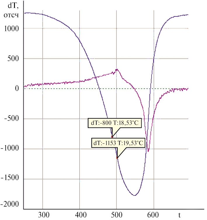 Рис. 2. Дифференциальная кривая нагревания эвтектической смеси.