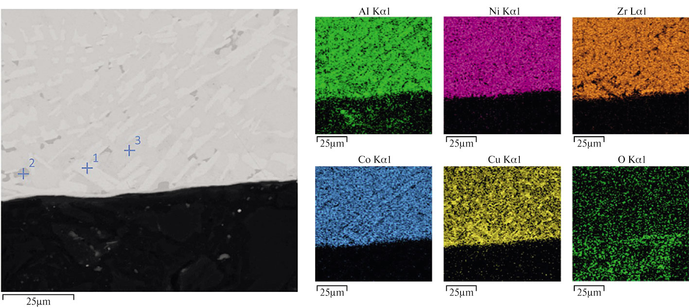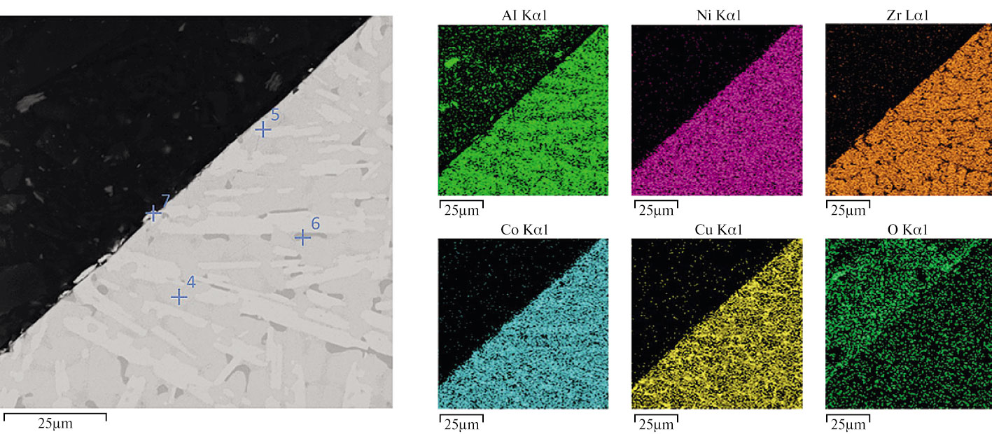 Номер спектра | O, ат. % | Al, ат. % | Co, ат. % | Ni, ат. % | Cu, ат. % | Zr, ат. % |