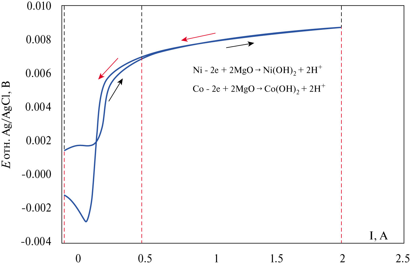 Гидроксиды никеля и кобальта обладают значительно большей растворимостью (ПР 2∙10–15 и 1.6∙10–15 соответственно), чем гидроксид алюминия (ПР 1∙10–32), в результате чего и происходит незначительная деградация исследуемого сплава Al₂₀Ni₂₀Co₂₀Cu₂₀Zr₂₀ [18].