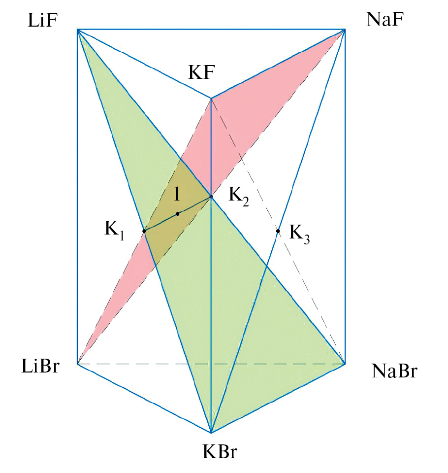 Рис. 1. Развёртка граневых элементов системы Li+, Na+, K+ || F-, Вr- [ ].
