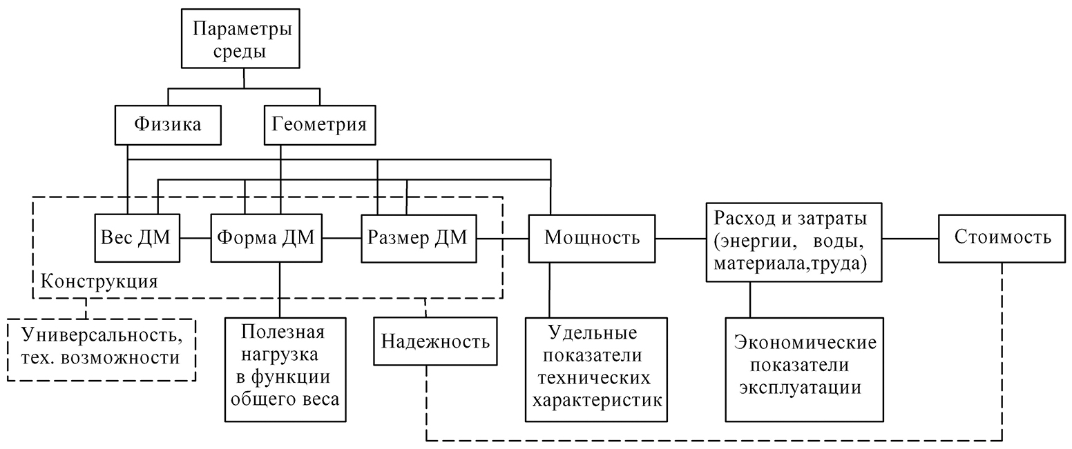 Параметр “физика” среды является определяющим и лимитирующим параметром “физики” объекта проектирования. Например, физико-механические свойства почвы (“физика”) ограничивают вес дождевальной машины, задавая параметры ходовых систем.