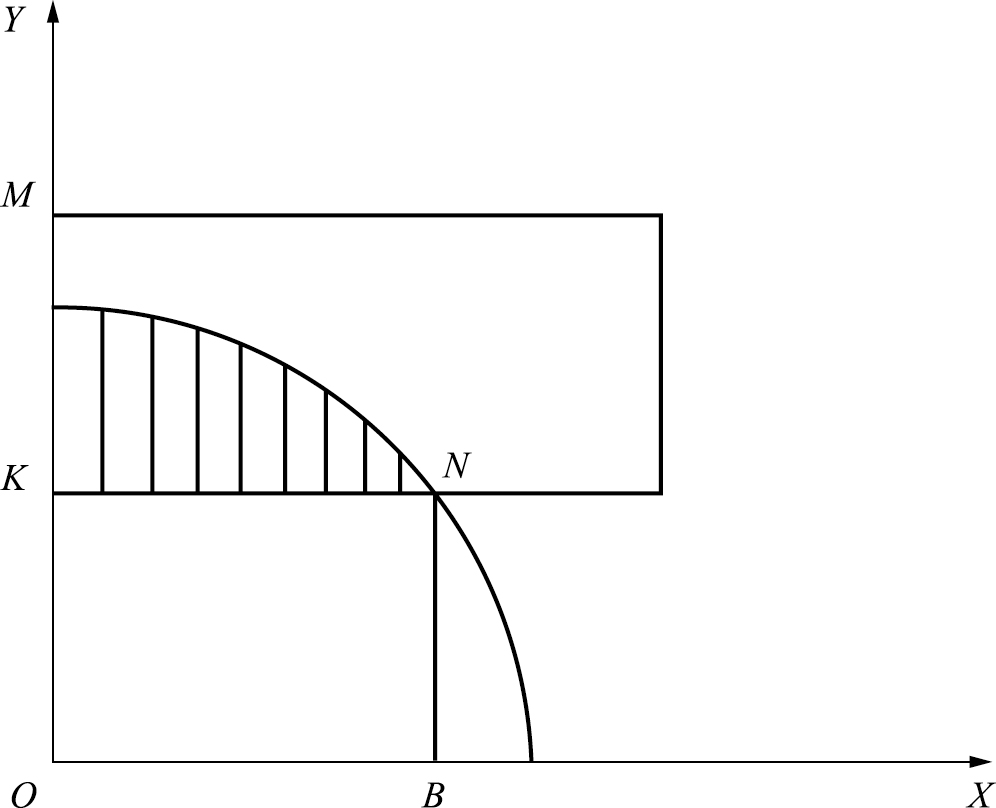 Найденная точка среднего значения функции будет иметь одинаковые аргументы и для фигуры ОМNB, и для заштрихованной фигуры KМN. Разница будет лишь в значении ординаты.
