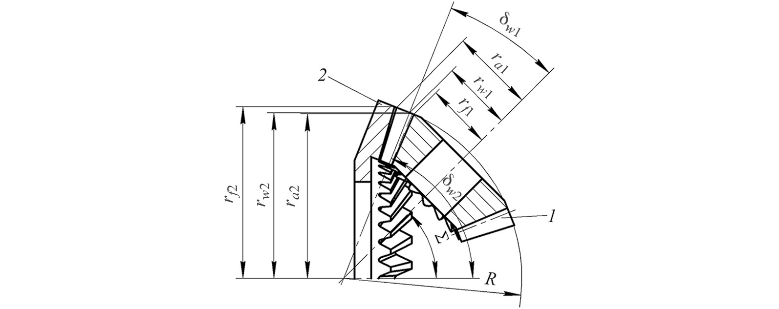 Исходными данными для математического моделирования, как правило, являются (рис. 2): модуль m, мм; межосевой угол Σ, град; количество зубьев шестерни 1 – z1 и колеса 2 – z2; коэффициенты смещения профилей зубьев шестерни x1 и колеса x2.
