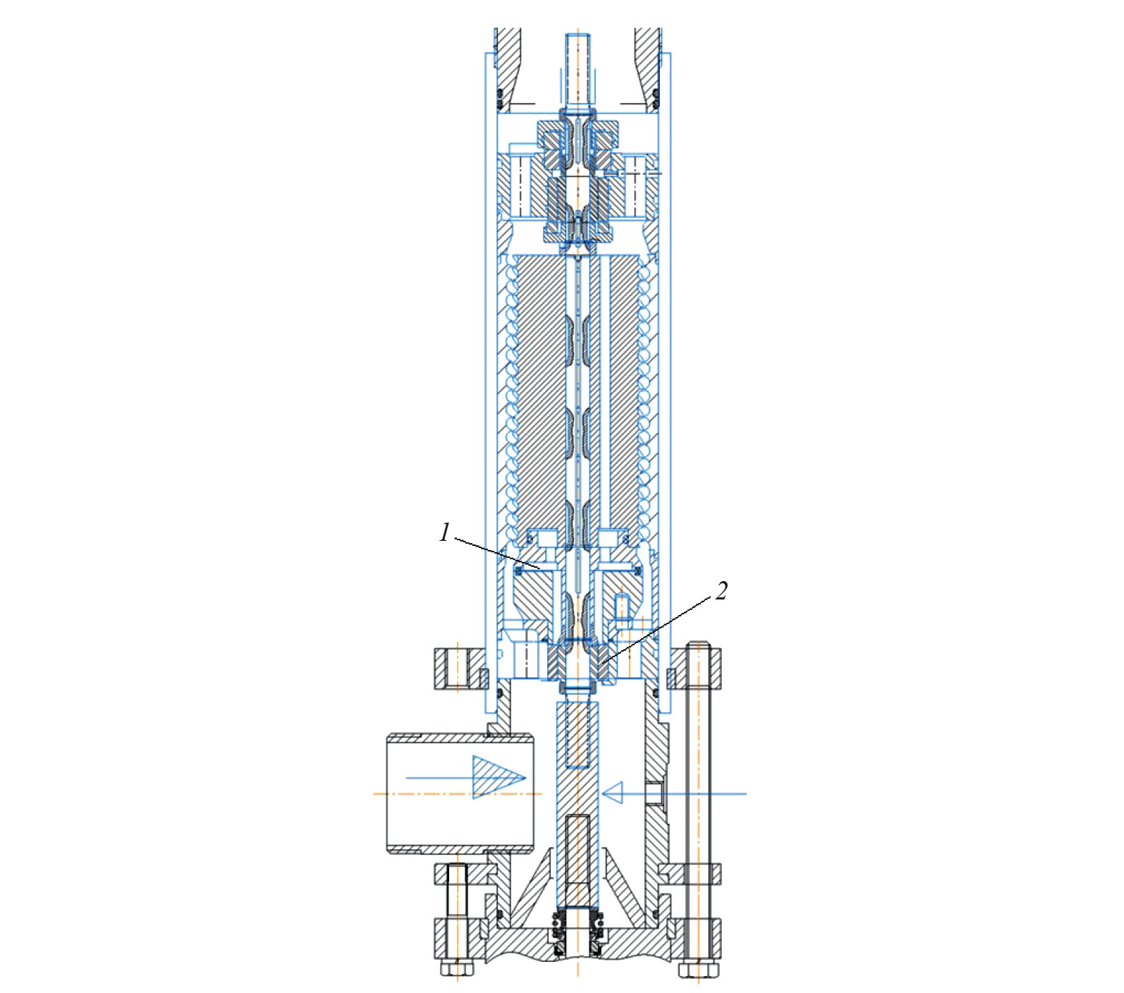 Рис. 1. ЛВН 01-92: 1 – узел осевой разгрузки; 2 – радиальный подшипник