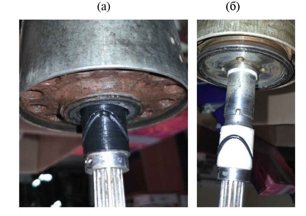 Рис. 7. Состояние подшипников ЭДЭ после испытаний: (а) – втулка по исполнению 1; (б) – втулка по исполнению 2