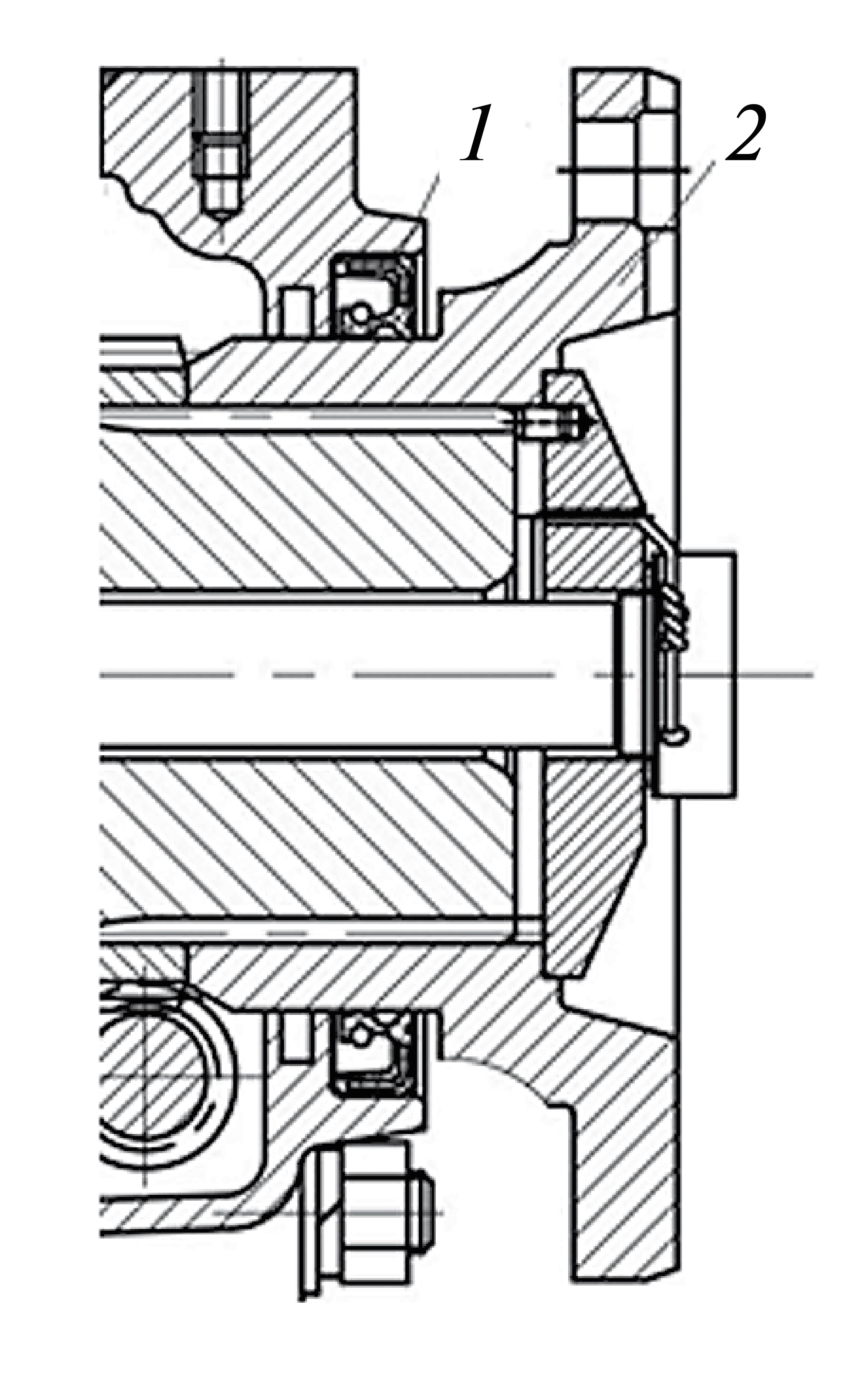 Рис. 1. Эскиз соединения фланца с манжетой коробки передач ЯМЗ: 1 – манжета; 2 – фланец.