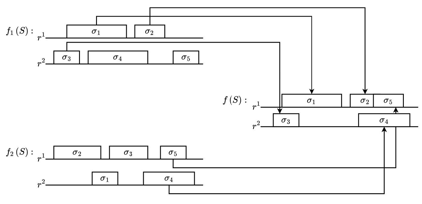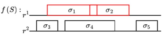 Другими словами, множество If есть множество точек пересечения интервалов , а также точек концов интервалов по всем требованиям σi ∈ S. Например, для и , таких, что множество If примет вид