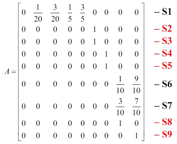 Fig. 1. Transition matrix (parameter A in AnyDynamics model), where states S2-S5 have unconditional transitions to others and S8, S9 are finite