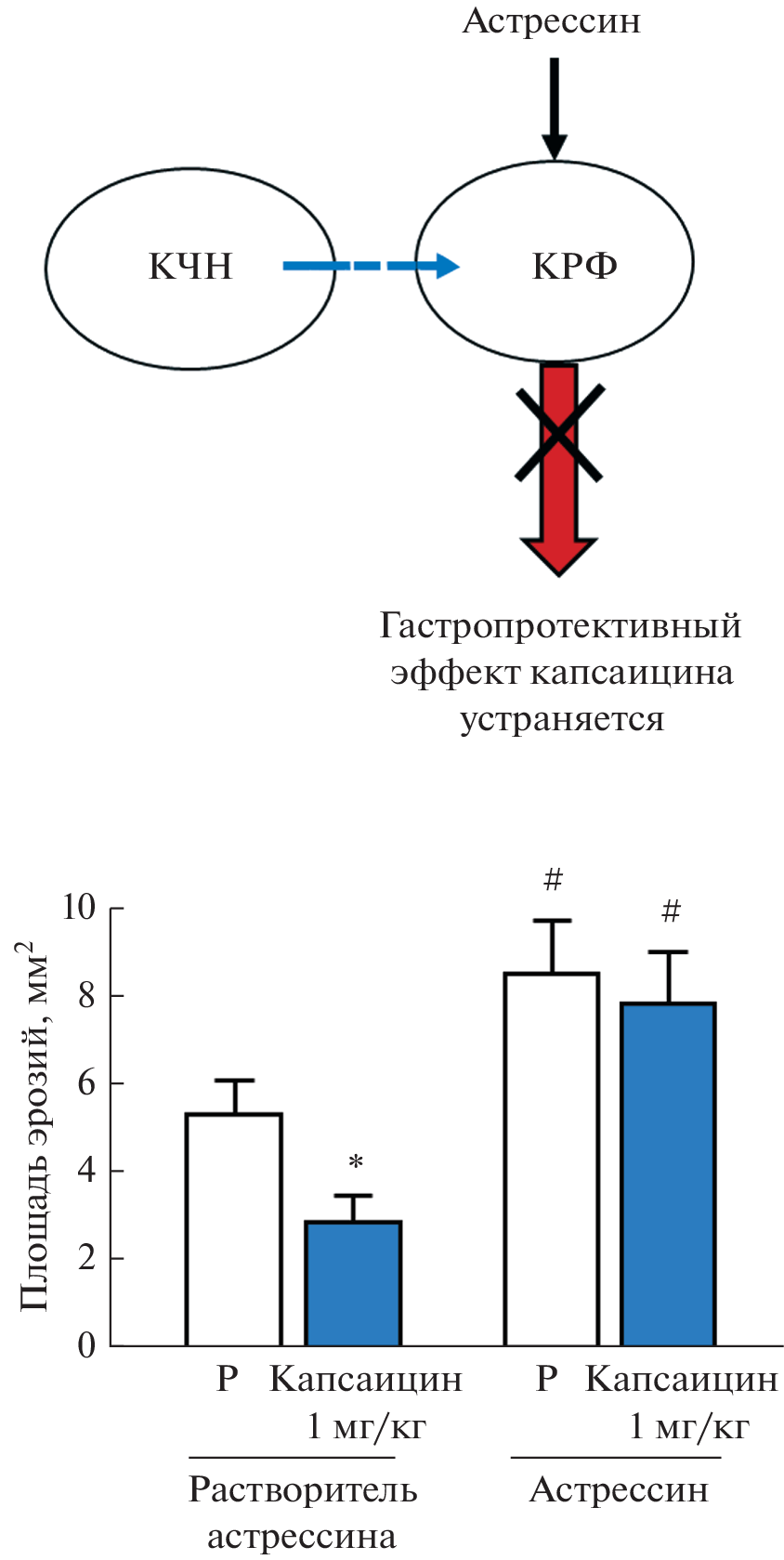 —Corticotropin-releasing factor (CRF) and capsaicin-sensitive afferent neurons with efferent-like function (CSN) make an important contribution to the regulation of the functions of the gastrointestinal tract (GIT) and gastroprotection. The aim of the review was to analyze the data of literature, including the results of our own studies on the interaction of CRF and CSN in the gastroprotection and regulation of the functions of the gastrointestinal tract, with a focus on their most studied interaction in the regulation of the motor function of the gastrointestinal tract. Based on the results obtained by the authors of the review, the contribution of CSN to the implementation of the gastroprotective effect of CRF and, conversely, the participation of CRF in the gastroprotective effect of capsacin, which activates CSN, is discussed. The contribution of glucocorticoid hormones to the implementation of the gastroprotective action of CRF and the compensatory gastroprotective role of these hormones under conditions of shutdown of CSN functioning are considered.