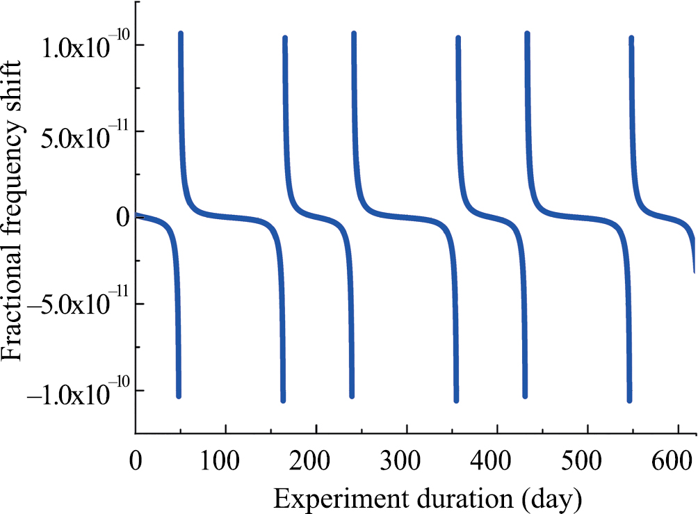 Для практической реализации предложенных экспериментов, помимо стандартов частоты со стабильностью ~10–18 в бортовом исполнении, необходимо наличие высокоточных средств измерения дальности и доплеровской скорости. Восстановленная с их помощью орбита спутников должна позволять рассчитывать все вклады в смещение частоты (1) с точностью не хуже 10–18 . Для околоземных спутников наилучшая точность восстановления вектора положения на сегодня составляет ~1 см (Монтенбрук и др., 2018), что для орбит из табл. 2 соответствует точности оценки не хуже . Для спутников на околосолнечной орбите наилучшая точность оценки положения продемонстрирована в проекте BepiColombo и составляет ~450 м (Кастеллини и др., 2020). Для орбит из табл. 3 это соответствует точности оценки для потенциала Солнца лучше . Остальные вклады в (1), зависящие от положения спутников, имеют более высокий порядок по , и точность их оценки значительно превосходит необходимую.