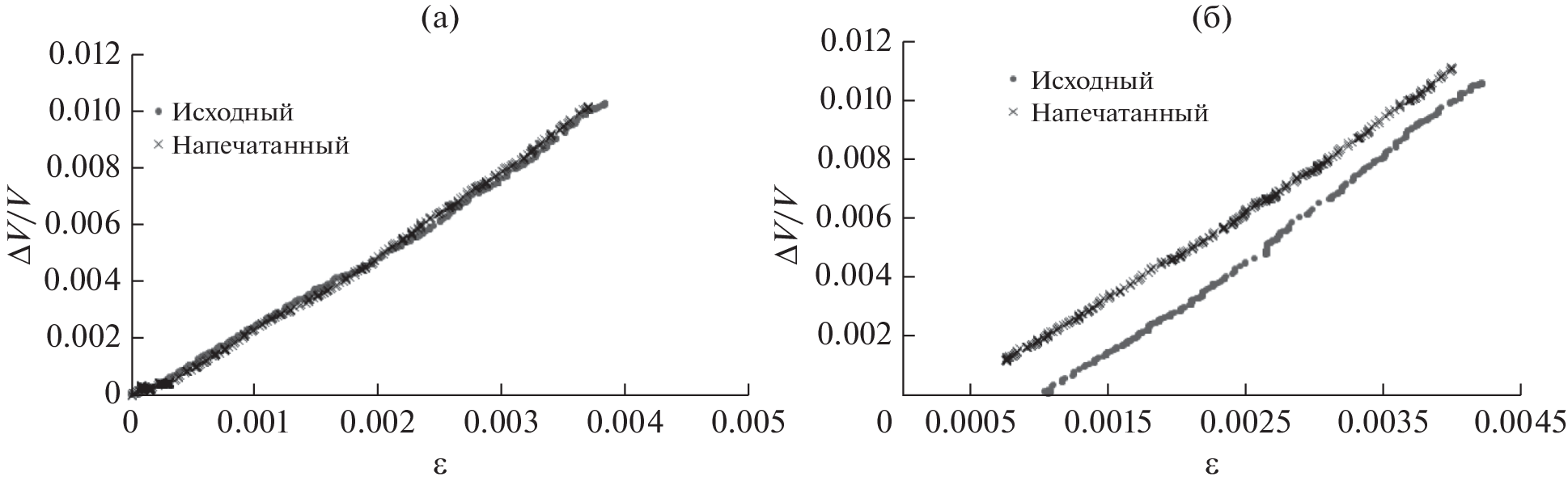Приведены результаты экспериментальных исследований влияния 3D-печати при 100% заполнении на упругие свойства нитевидных образцов полимера PLA. Статическим методом и методом Терстона–Браггера одновременно измерены зависимость деформации и относительного изменения скорости упругих волн от приложенного механического напряжения (вплоть до разрыва) для исходного и 3D-напечатанного образцов полимера PLA. По результатам измерений рассчитаны линейный и нелинейный модули Юнга и акустический нелинейный параметр второго порядка. Установлено, что 3D-печать приводит к ухудшению прочностных и пластических характеристик полимера PLА. Обнаружено различное поведение нелинейных параметров исходного и 3D-напечатанного образцов полимера PLA в области нагрузки и разгрузки, которое связывается с изменением внутренней структуры образца, вызванным 3D-печатью.
