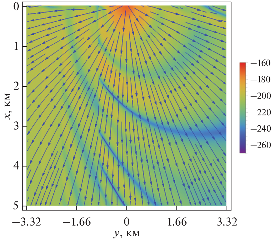 - Petrov P.N., Petrov P.S. Asymptotic solution for the problem of sound propagation in a shallow sea with the bathymetry described by a parametric quadratic function // J. Acoust. Soc. Am. 2019. V. 146. № 3. P. 1946–1955.