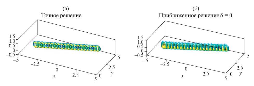 Рис. 6. Сравнение (а) – точного и (б) – приближенного решения для точных данных.
