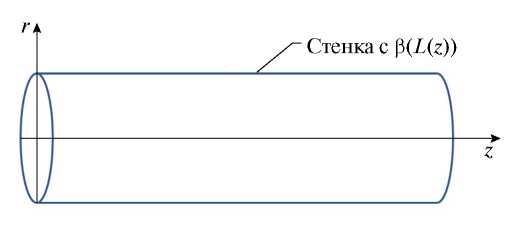 Рассмотрим задачу о распространении звуковых волн в цилиндрическом канале радиуса r0 с однородным потоком и удельной проводимостью (адмиттансом) стенок β(L(z)), зависящим от локального уровня звукового давления L(z) (рис. 1).