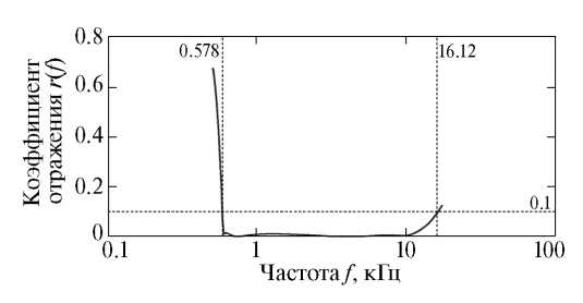 Рис. 5. Расчетный модуль r(f) коэффициента отражения звука от покрытия на рис. 4.