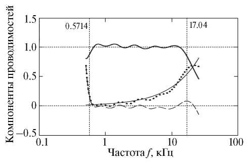 Рис. 8. Компоненты проводимостей покрытия с глицерином и компенсаторами. Обозначения те же, что и на рис. 6.