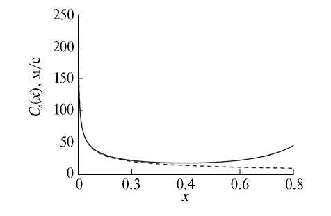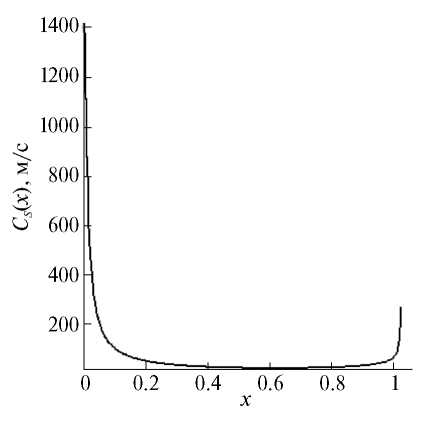 Графически проиллюстрирована зависимость скорости звука cs(x) в обоих рассмотренных случаях.