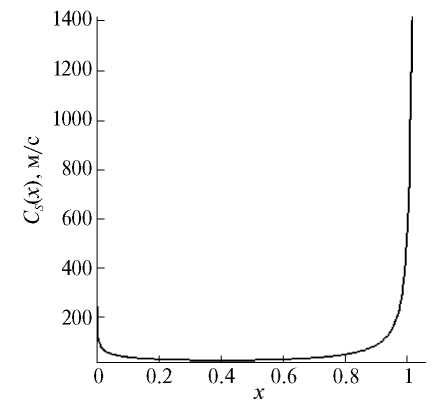 Рис. 1. Иллюстрация аналитической зависимости (16) скорости звука от концентрации x.