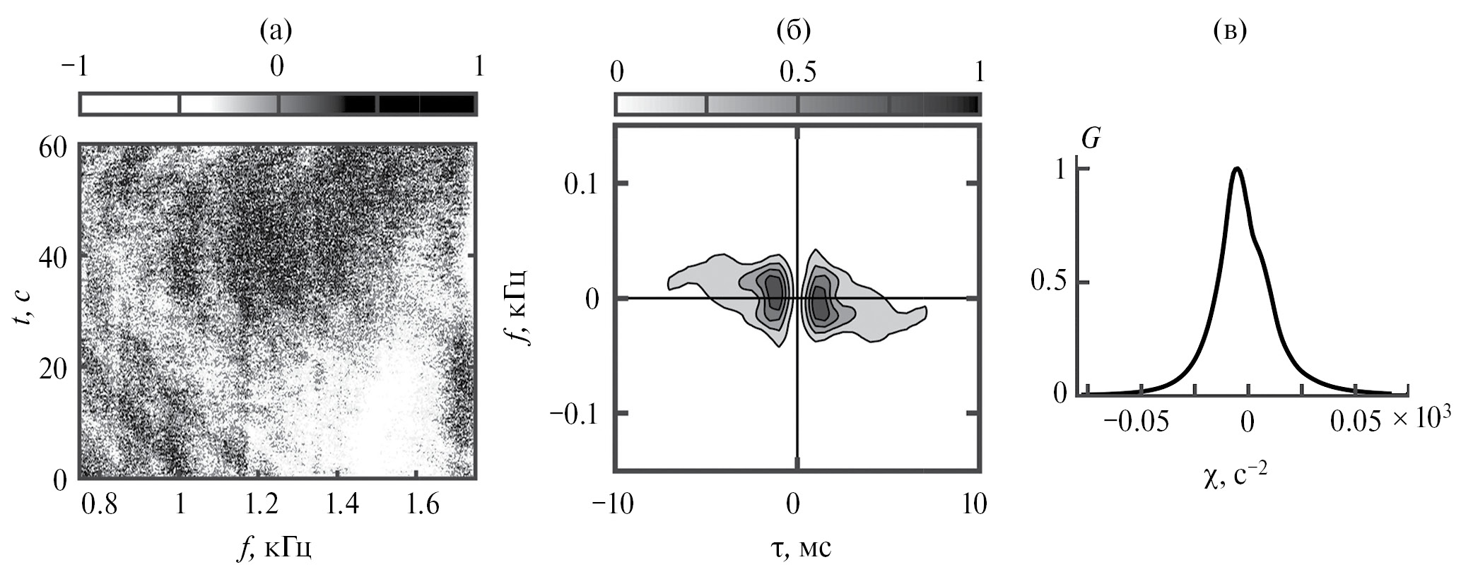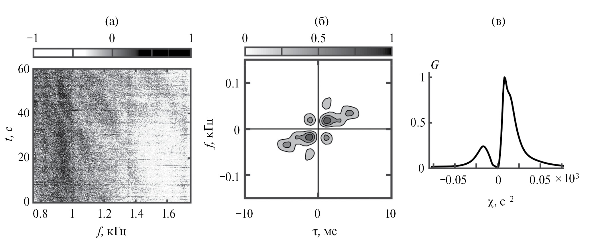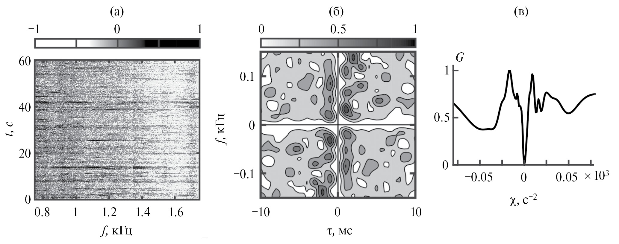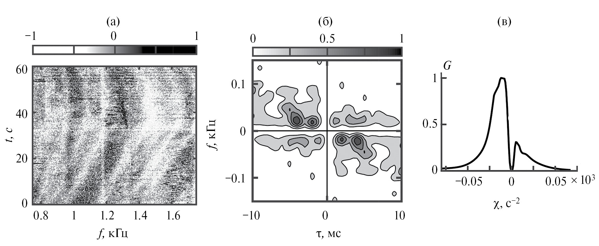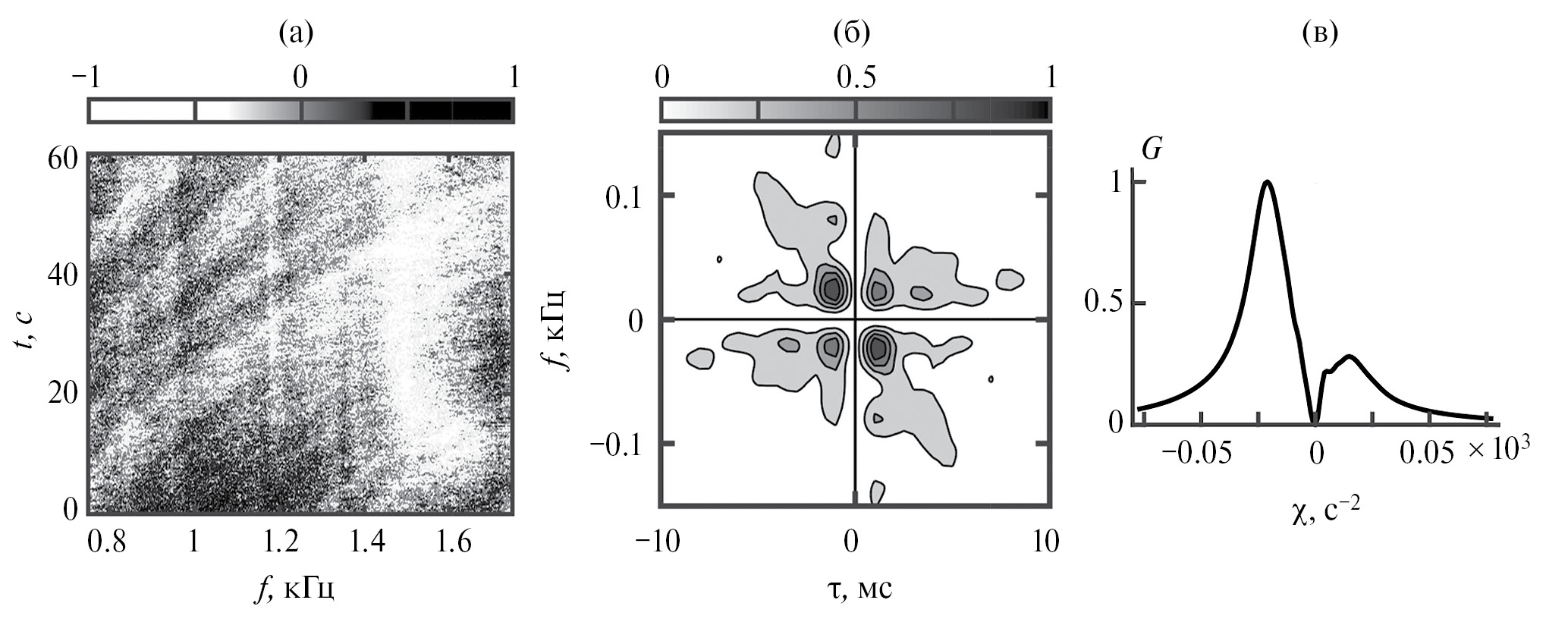 Восстановленная интерферограмма, очищенная от помехи, приведена на рис. 8г. Очищенная интерференционная картина становится контрастней, полосы имеют равные углы наклона. Максимальный частотный масштаб изменчивости оценивается как Λ = 0.96 кГц, что превышает ширину полосы Δf = 0.9 кГц.