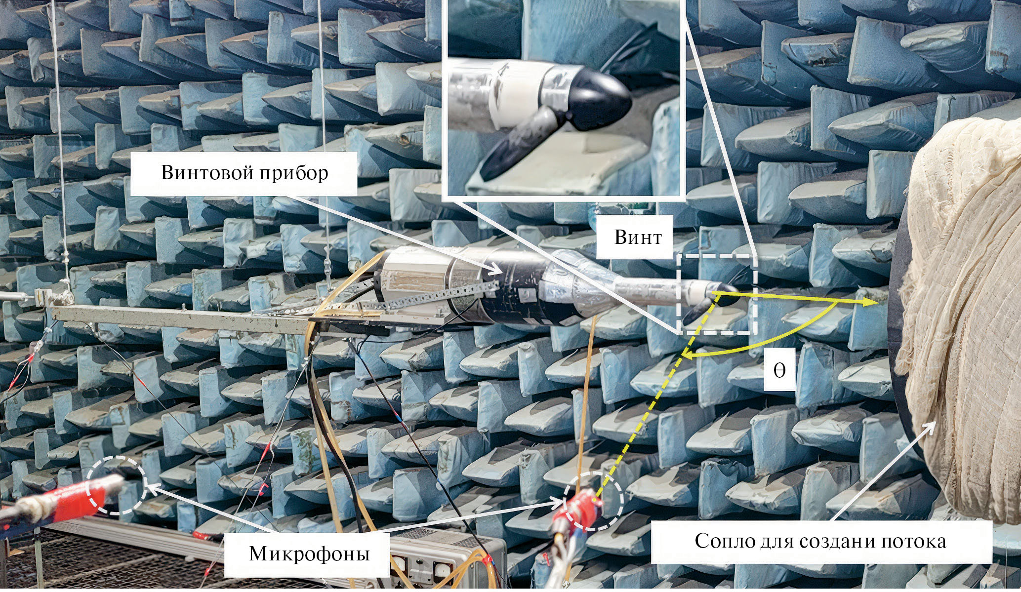 Рис. 5. Схема испытаний одиночного винта в заглушенной камере АК-2