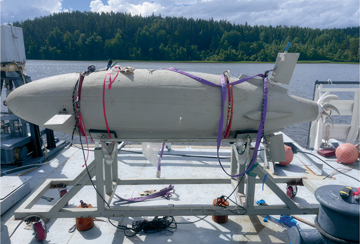 Расчет акустического излучения в гидроупругой задаче для безграничного пространства провести несоизмеримо легче, чем для ограниченного объема — так как отпадает необходимость создавать численную виброакустическую модель стенда. В настоящей работе приводятся результаты измерений шумоизлучения вращающегося гребного винта, в том числе на резонансных частотах лопастей, выполненных с целью дальнейшей верификации расчетов. Подход к верификации с использованием физических моделей позволяет качественно и количественно воспроизвести исследуемые особенности физических процессов, что в дальнейшем за счет созданного цифрового двойника существенно сократит объем измерений. В представленной работе приведены результаты измерений акустического поля гребного винта в условиях глубоководного полигона. Винт приводился во вращение с помощью электродвигателя, установленного в корпус обтекаемого самодвижущегося подводного аппарата (рис. 1).