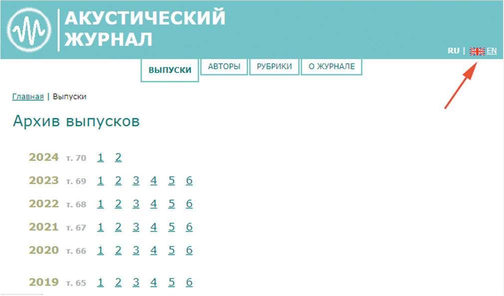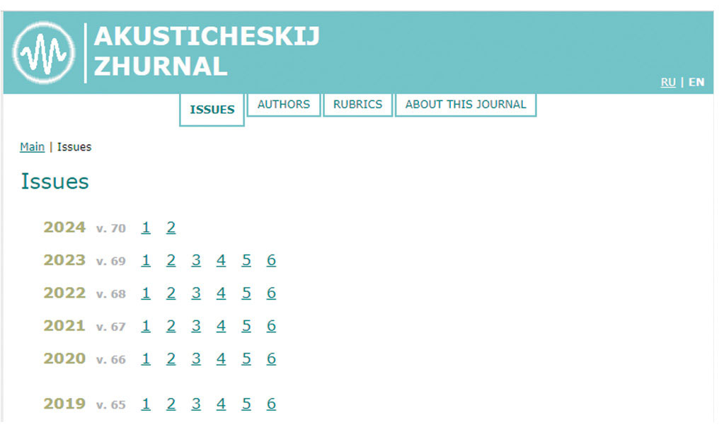 Рис. 4. Страница Архива “Акустического журнала”, 2020, № 3