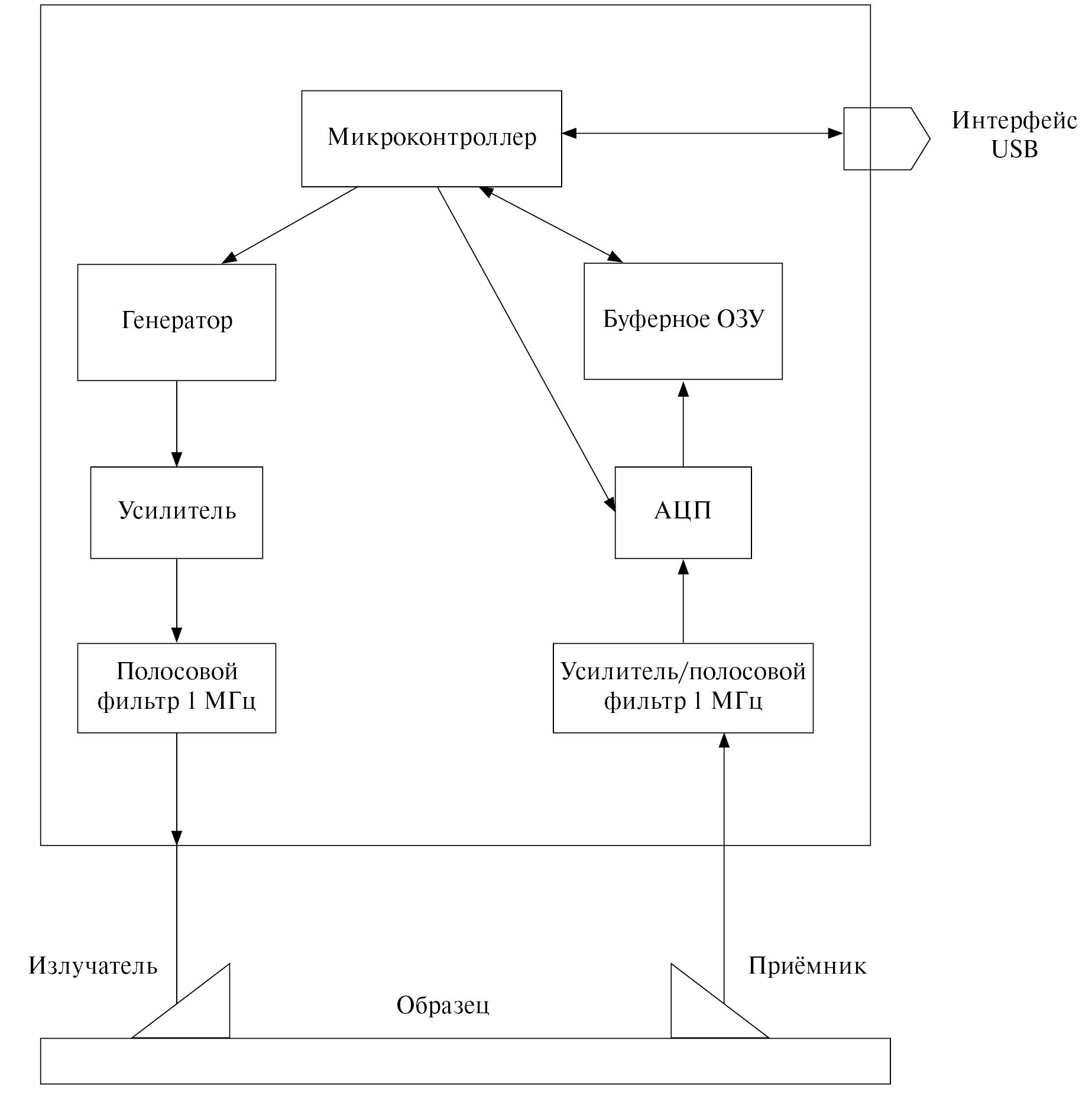 Рис. 1. Функциональная схема устройства для измерения нелинейного акустического параметра