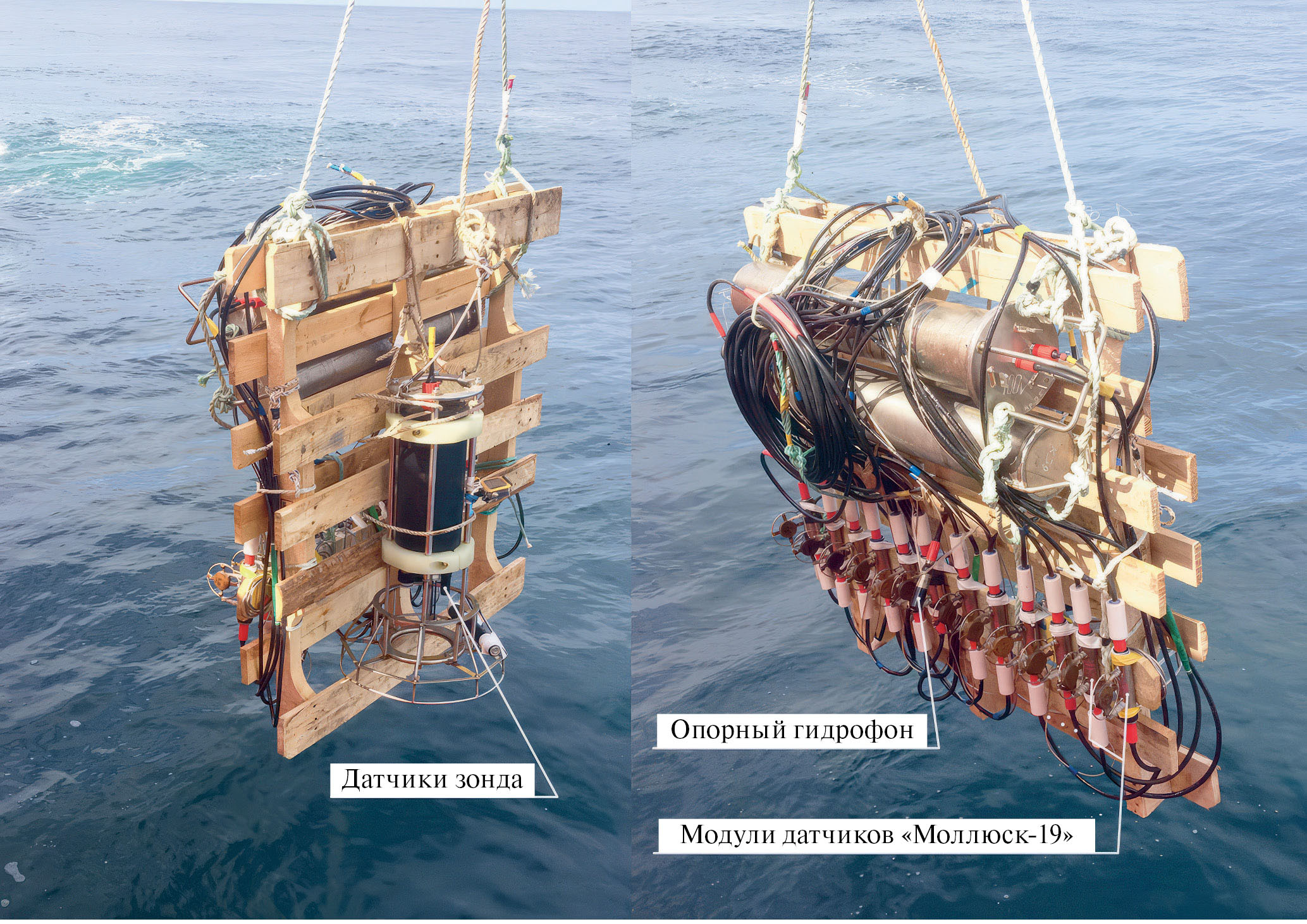 Лаборатория акустического зондирования океана ТОИ ДВО РАН, руководимая до 2020 г. доктором физико-математических наук А. Н. Рутенко, имеет многолетний опыт разработки и применения ряда многоканальных вертикальных измерительных приемных систем с общим названием «Моллюск» [8–10]. Эти системы успешно применялись на шельфе Японского моря, а «Моллюск-07» и на северо-восточном шельфе о. Сахалин, где измерения проводились по заказам нефтедобывающих компаний «Эксон Нефтегаз Лимитед» и «Сахалин Энерджи Инвестмент Компани».