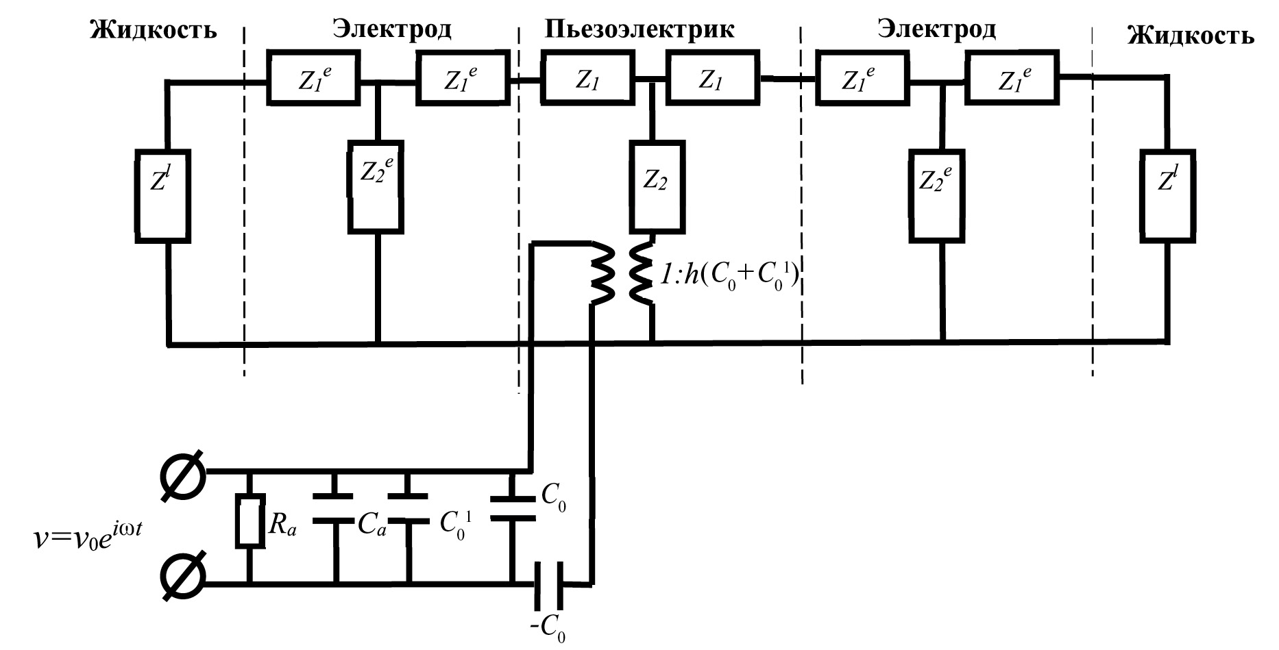 3. Эквивалентная схема мезона резонатора, погруженного в исследуемую жидкость