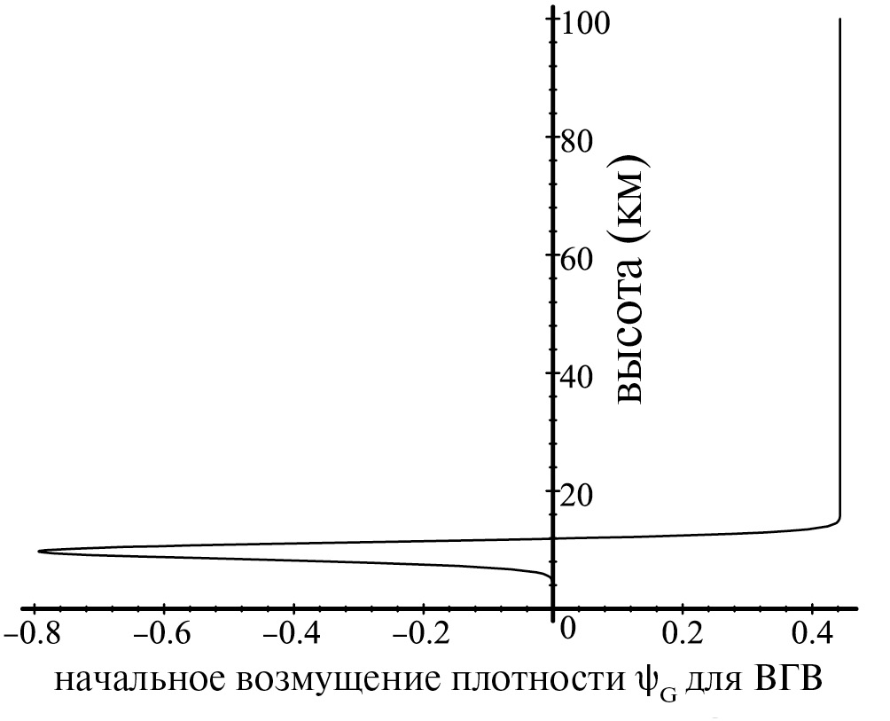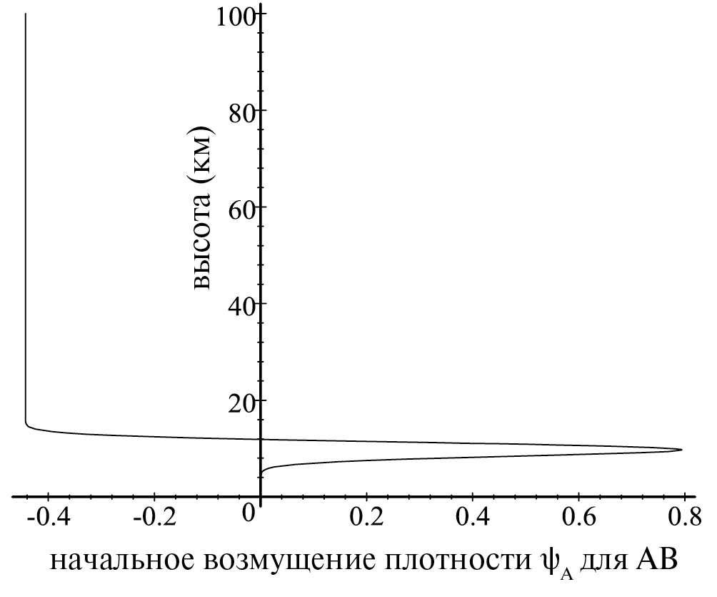 Рис. 2. Вертикальный профиль возмущения плотности .