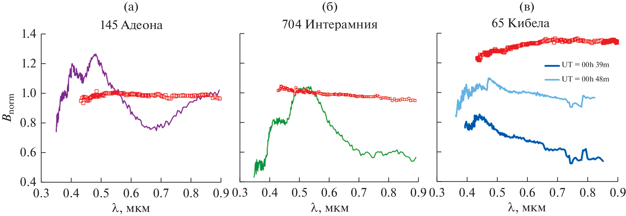 - Бусарев В.В., Щербина М.П., Барабанов С.И., Ирсмамбетова Т.Р., Кохирова Г.И., Хамроев У.Х., Хамитов И.М., Бикмаев И.Ф., Гумеров Р.И., Иртуганов Э.Н., Мельников С.С. Подтверждение сублимационной активности примитивных астероидов Главного пояса 779 Нины, 704 Интерамнии и 145 Адеоны и ее вероятные спектральные признаки у 51 Немаузы и 65 Цибелы // Астрон. вестн. 2019. Т. 53. С. 273−290. https://doi.org/10.1134/S0038094619040014. (Busarev V.V., Shcherbina M.P., Barabanov S.I., Irsmambetova T.R., Kokhirova G.I., Khamroev U.Kh., Khamitov I.M., Bikmaev I.F., Gumerov R.I., Irtuganov E.N.,Mel’nikov S.S. Confirmation of the sublimation activity of the primitive Main-Belt asteroids 779 Nina, 704 Interamnia, and 145 Adeona, as well as its probable spectral signs on 51 Nemausa and 65 Cybele // Sol. Syst. Res. 2019. V. 53. P. 261–277. 10.1134/S0038094619040014.)