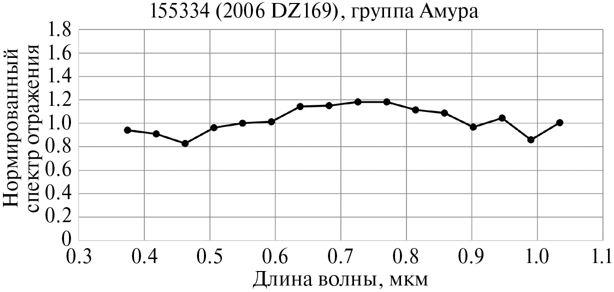 Рис. 4. Спектр отражения астероида 155334 (2006 DZ169) группы Амура из каталога GDR3.