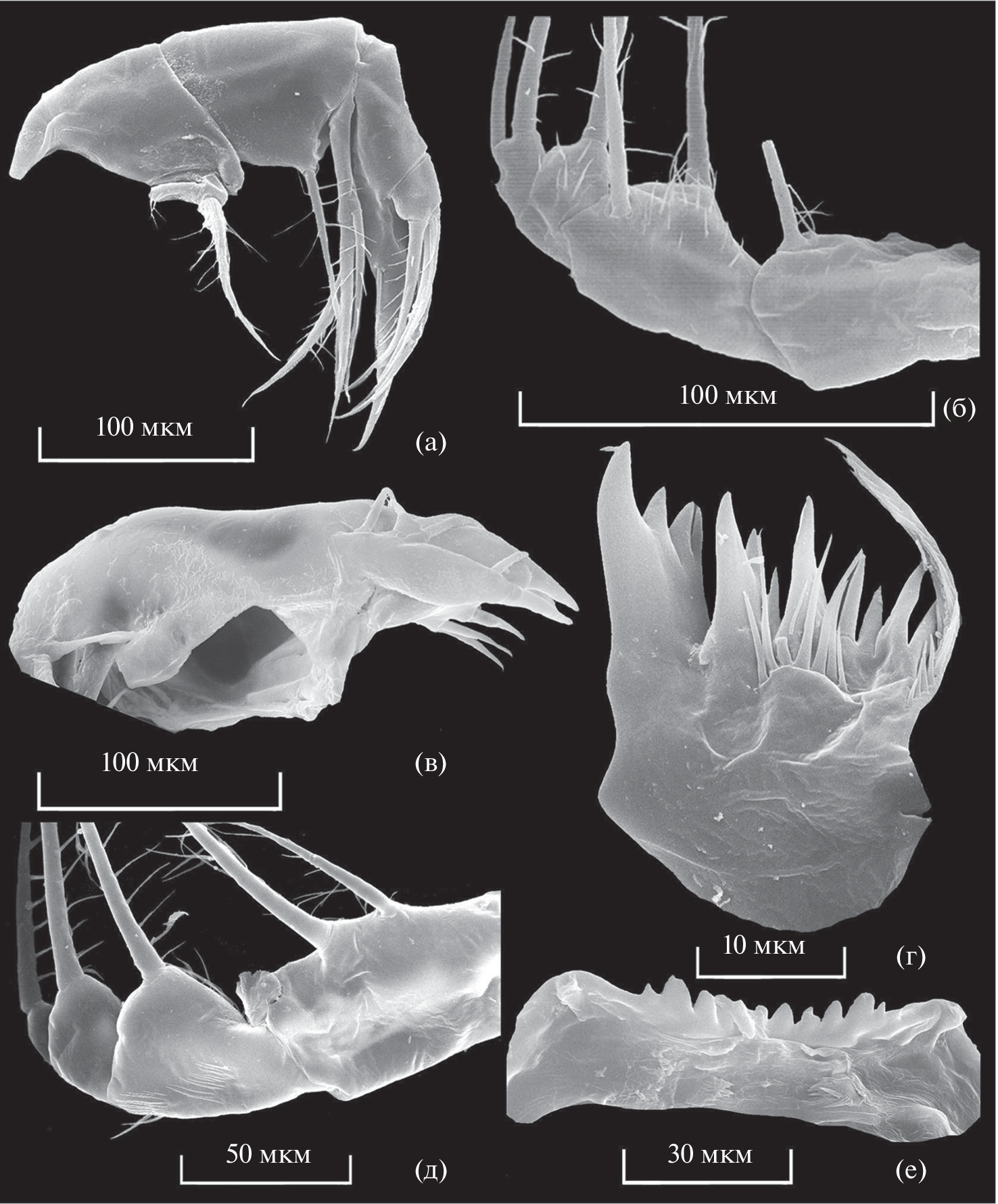 The paper presents the results of the study the qualitative and quantitative composition of the planktonic Crustacea of Dood Tsagaan Lake (northwestern Mongolia) (Cladocera, Diaptomidae, Cyclopidae) in modern times. Comparative analysis of the species composition of crustaceans according to new data and data obtained in the last century (1962–1963) showed that during our studies the composition of crustaceans was increased by five species of Cladocera and by three species of Copepoda, 2 species of them are from the order Cyclopoida and one from the order Calanoida. Ultrastructural studies of the main morphological parts of the copepods crustaceans Mixodiaptomus incrassatus (Sars, 1903), Acanthodiaptomus paulseni (Sars, 1903) and Cyclops glacialis Flossner, 2001 were carried out for the first time using a scanning electron microscope (SEM). Detailed study of morphometric and morphological characters including the use of SEM showed that C. glacialis inhabiting Dood Tsagaan Lake is identical to the species described in lakes (Turgun Kharhiraa Uvs aimag and Nogoon nuur) in northwestern Mongolia. The biomass of M. incrassatus, an important food object for whitefish and other fish species, was found to reach 1100 mg/m3 in the modern period.