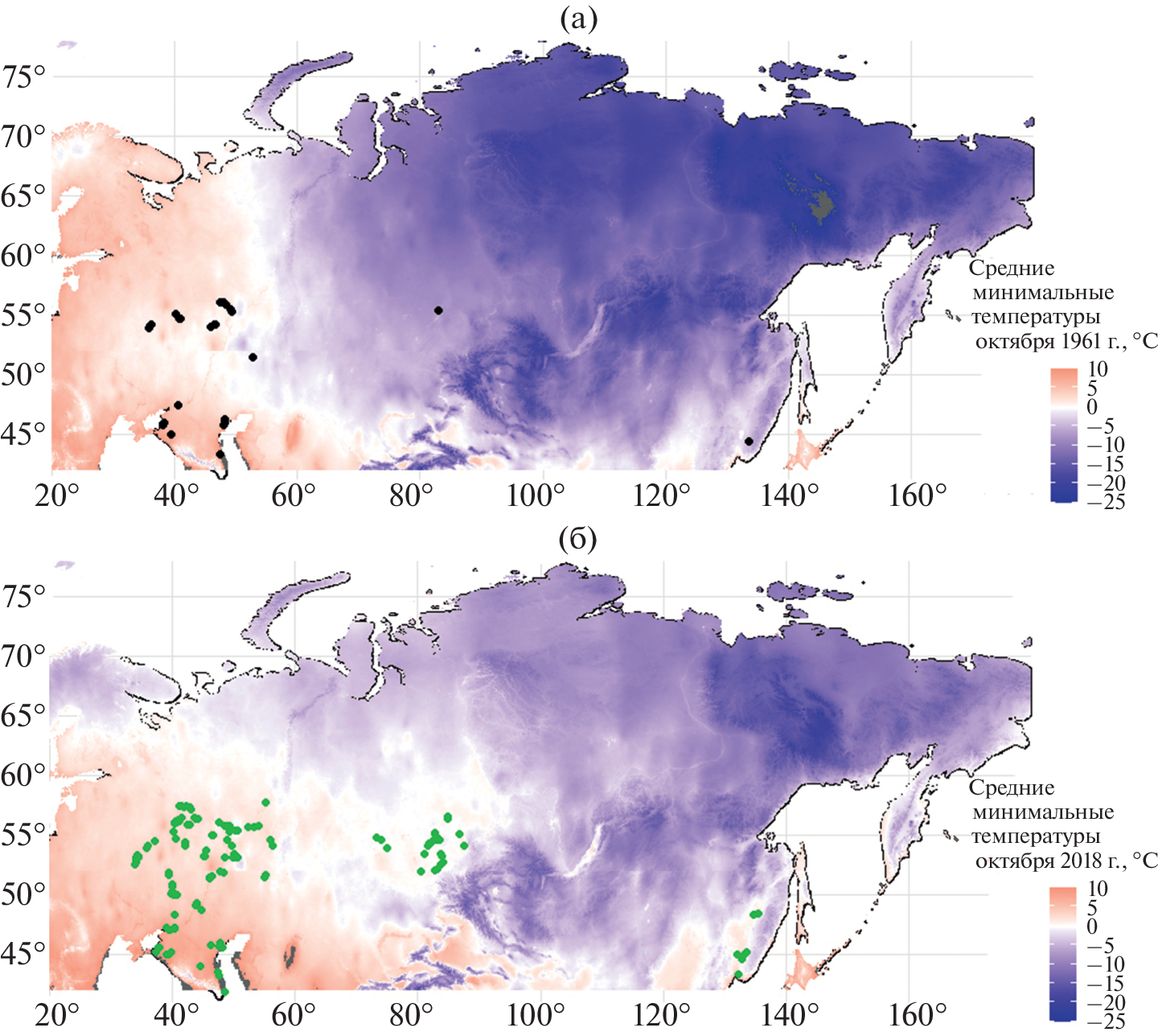 According to publication and literature, herbarium data, materials of Internet resources, the change in distribution of aquatic fern Salvinia natans (Salviniaceae) on Russian territory was traced since the beginning of XX century until 2021, and the current boundaries of its range were determined. Among the bioclimatic and temperature indicators that determine the distribution of S. natans, the minimum and maximum temperatures in October and January and the maximum temperatures in April and July showed the highest statistical significance, which is associated with important stages of the life cycle of S. natans. Comparison of species localities with climatic and temperature indicators for the time periods of 1960–1969, 2010–2018, 2011–2021 showed that up to 2021 in the European part, West Siberia, and the Far East there was significant spreading of S. natans to the north (more than 200 km). A notable increase in the number of records of the species has been found since the 2000s in different regions. For example, in the Ivanovo Region from 2018 to 2021 their number has increased more than three time. The expansion of the species occurs against the background of a noticeable increase in average annual temperatures and changes in other bioclimatic indicators. If present temperature trends continue, S. natans will expand its range even further north, east, and west in European Russia, north and west in West Siberia and the Far East. Due to the ongoing expansion of S. natans, the premises for the exclusion of the species from a number of regional Red Data Books were discussed.